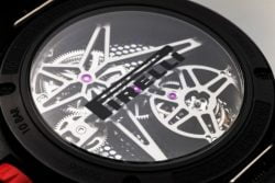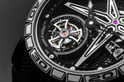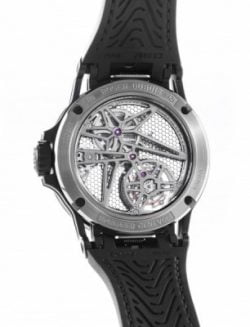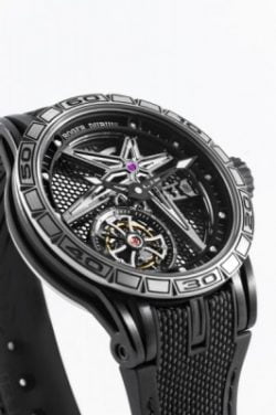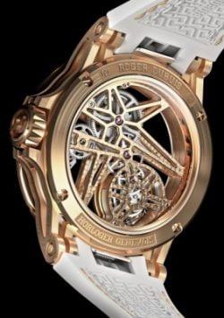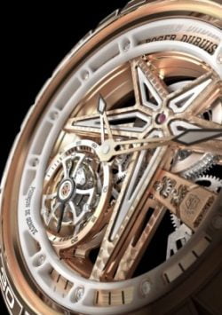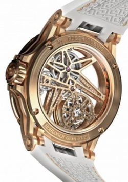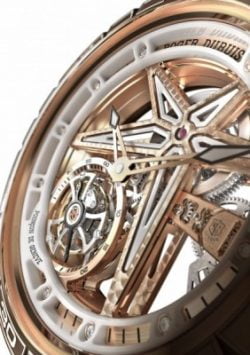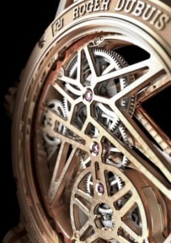 Creativitatea departamentului de cercetare și dezvoltare al lui Roger Dubuis a creat un cadru de dimensiuni reduse pentru tourbillonul scheletic mărcii. Un calibru intern care prezintă una dintre cele mai căutate artificii tehnice de la Hyper Horology, redus pentru a fi montat într-o carcasă de 39 mm. Echipat cu o rezervă de putere de 60 de ore, acest model este înfrumusețat cu decorațiuni semnate Hallmark of Geneva.