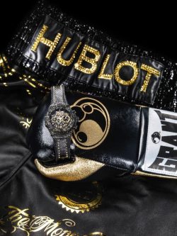 Pe data de 26 august 2017, Floyd Mayweather, superstarul boxului, a intrat cu stil în ring, la T-Mobile Arena. Pantalonii lui negri, purtau însemnele “TBE” și “HUBLOT”, cele două cuvinte care exprimă o singură stare de spirit aceea de victorie absolută, creația lui Sophie Whittam, directorul Fight Label, marca de lux pentru îmbrăcăminte de box. Talentatul designer a ales negru și aur pentru a simboliza caracterul iconic al atletului. Ea a creat o ilustrație reprezentându-l pe Floyd pe propria notă de 1 milion de dolari. Tăiat din frunze de aur, desenul a fost aplicat manual cu miez negru.