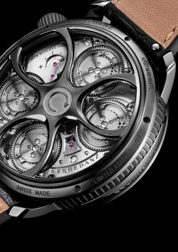 Maximus, în antichitate, era un cuvânt cheie ori de câte ori erau exprimate măreția și splendoarea. Cu o colivie de 27 de mm, aproape două ori mai mare decât cele mai mari cunoscute una până în prezent, cel mai mare ceas de mână cu tourbillon din lume este KERBEDANZ Maximus. Cel mai impunător monument al antichității romane este încă în Roma și este numit Circus Maximus în latină și în italiană. Această celebră denumire a fost folosită pentru cursele de care de luptă, trase de cai. A fost construită între dealurile Palatine și Aventine la începutul secolului al VI-lea. de către regele Etrusc, Tarquin Bătrânul. Complicația întâlnește știința cronometrică Turbillonul a fost inventat de marele ceasornicar Abraham Louis Breguet (1747-1823). Complicația plasează organul regulator al ceasului înăuntrul coliviei care modifică poziția elementelor de reglare pentru a compensa erorile datorate forțelor gravitaționale, și dezvoltarea neconcentrică a arcului de echilibru la punctul în care acesta este atașat de colivie. În ceasornicarie, mărirea dimensiunilor anumitor componente nu înseamnă doar augmentarea dimensiunilor acestora. Totul trebuie reinventat, compensat. Pentru acest lucru au fost necesare două brevete de invenție. Simbolismul calibrului final Nu numai ca Maximus Flyinf Tourbillon by KERBEDANZ permite cuiva să observe mai bine și să înțeleagă dedesubturile acestui mecanism fascinant, datorită dimensiunii sale foarte mari, dar poate demonstra de asemenea sporirea competențelor orologere ale companiei: acest ceas cere proiectarea și fabricarea unui arc balansier special, un suport cu surub pentru reglare fină si o roată balansier. Colivia acestui ceas execută o rotație completă o dată la 6 minute si nu la 60 de secunde cum este normal.