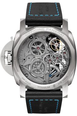 Cu o carcasă de titan imprimată 3D, folosind tehnica de sinterizare directa cu laser, Lo Sciensato -Luminor 1950 Tourbillon GMT este, fără îndoială, una dintre cele mai inovatoare și surprinzătoare creații ale Casei Panerai din Neuchatel.