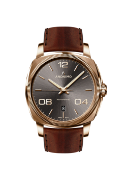 Cadranul  antracit periat și cureaua din piele cusută manual evidențiază cercetarea diversității materialelor și grija acordată esteticii. Pielea de vițel, decorată în gradienți maro de mahon, se amestecă perfect cu bronzul și dă piesei un caracter între vintage și modern. Pe baza codurilor de eleganță italiană, ANONIMO merge dincolo de abordarea tradițională și oferă diferite moduri de a purta ceasurile. Echipat cu un nou sistem de interschimbabilitate, este ușor să combinați structura și culoarea conform dorințelor: o necesitate în era personalizării.