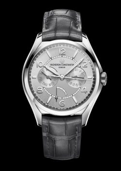 Cadran de tip sector: Una dintre caracteristicile distinctive ale colecției constă în apariția cadranului de tip sectorial. În timp ce inelul alb, punctat de numerele arabe alternante și marcajele de oră de tip rectangular, canalizează inspirația anilor 1950, prezența pe suprafață a două tonuri subtile obținute prin efectele de finisare conferă un plus de eleganță și sofisticare. Jocul luminii de pe cadran îi conferă profunzime și o personalitate puternică. Prin reinterpretarea propriilor rădăcini, colecția FIFTYSIX® atinge un stil distinctiv prin adoptarea unei coroane încastrate în carcasă, diferențiind-o de predecesoarea sa din 1956, care a abordat mai clasic acest detaliu specific. O colecție exprimată prin trei modele, fiecare cu propriile variații: Colecția FIFTYSIX® prezentată la SIHH 2018 cuprinde trei modele cu diametrul de 40 mm disponibile în diferite versiuni din oțel sau aur: FIFTYSIX® auto – răsucire Carcasa din oțel cu diametrul de 40 mm sau carcasa din aur de 5 carate din acest model găzduiește un nou mecanism cu auto-înfășurare, Calibru 1326, înzestrat cu o rezervă de putere de 48 de ore. Cu masa oscilantă din aur de 22 carate având și crucea malteză , acest ceas care afișează orele, minutele și secundele centrale și o deschidere pentru indicarea datei este echipat cu un dispozitiv stop-secunde. Finisarea mecanismului – Côtes de Genève, granulare circulară și melcată – pot fi admirate prin capacul transparent din cristal de safir al carcasei. Numerele arabe din aluminiu și marcajele de oră aduc în lumină cadranul monocrom cu efectul dublu opal -gri: gri pe versiunea din oțel și tonuri de argint în varianta de aur roz. Săgețile de aur pentru minute si ore, precum și marcajele de oră sunt acoperite cu un material luminiscent. Acest model din colecția FIFTYSIX® este prevăzut cu o curea din piele de aligator asigurată de o clamă din oțel în formă de cruce, cu catarama de aur in functie de versiune. FIFTYSIX® data zilnică și indicator de rezervă de putere